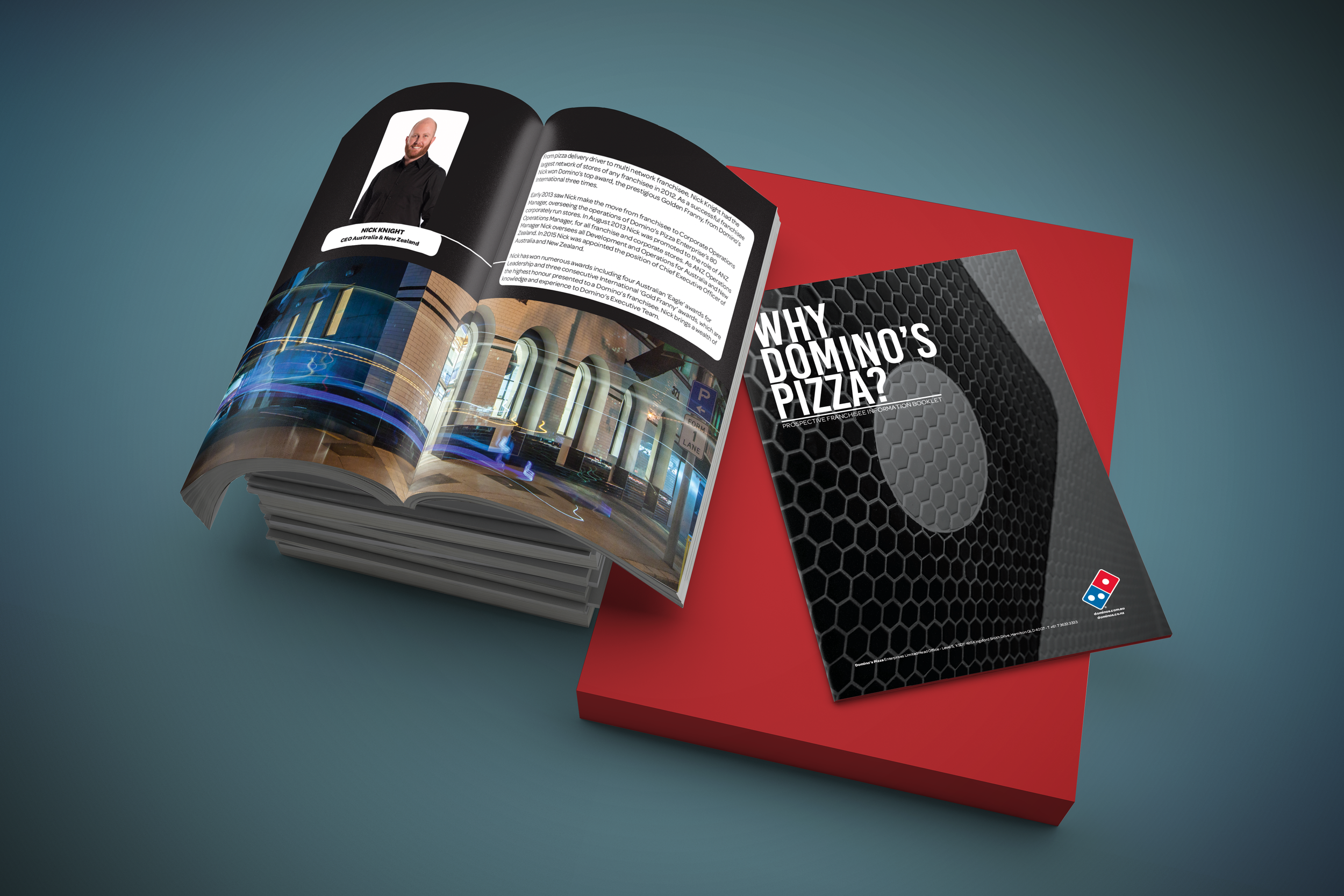 The Domino’s Pizza Enterprises franchisee information booklet was designed as a clear, engaging and brand-aligned publication for potential franchise partners. Developed for national use and later adapted as a flexible template for international markets, the design ensured consistency, readability, and scalability across multiple regions and audiences.